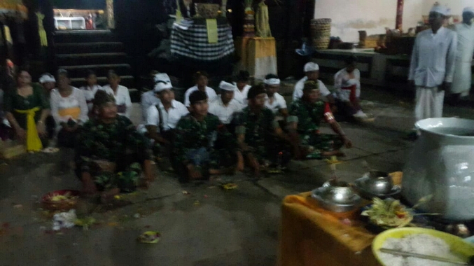 Pantauan di lapangan setidaknya puluhan Satgas TMMD yang beragama Hindu berbaur dengan masyarakat melaksanakan sembahyang yang dipimpin oleh Jero Mangku Puseh Banjar Tampuagan.