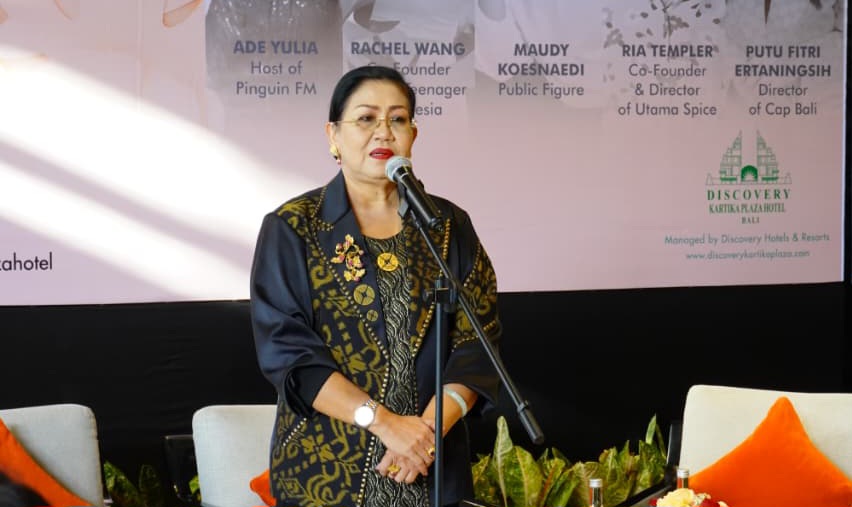 BERITAFAJARTIMUR.COM (BADUNG) – Ketua Dekranasda Provinsi Bali, Ibu Puteri Koster, menjelaskan bahwa peran perempuan sangat berpengaruh terhadap kemajuan Bali. Hal tersebut ia sampaikan saat menjadi pembicara kunci dalam kegiatan Voice of Influence yang dilaksanakan di Discovery Kartika Plaza Hotel Bali, Sabtu (4/4).