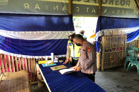 Wakapolres Gianyar Cek Kesiapan Pos Pengamanan di Simpang Puri Gianyar
