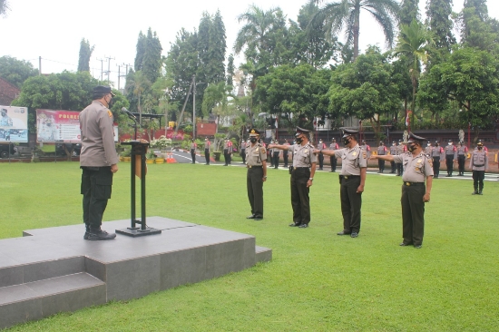 Adapun personel yang mendapat kenaikan pangkat pengabdian yakni Ipda I Made Kiyeng Suarkana dan Ipda Anak Agung Oka Brandi, sedangkan personel yang mamasuki masa purnabakti yakni AKP I Ketut Merta, S.H., Ipda I Made Artha, Aiptu I ketut Budarga, Aiptu I Made Merta Buana dan Aiptu I Wayan Kisid.