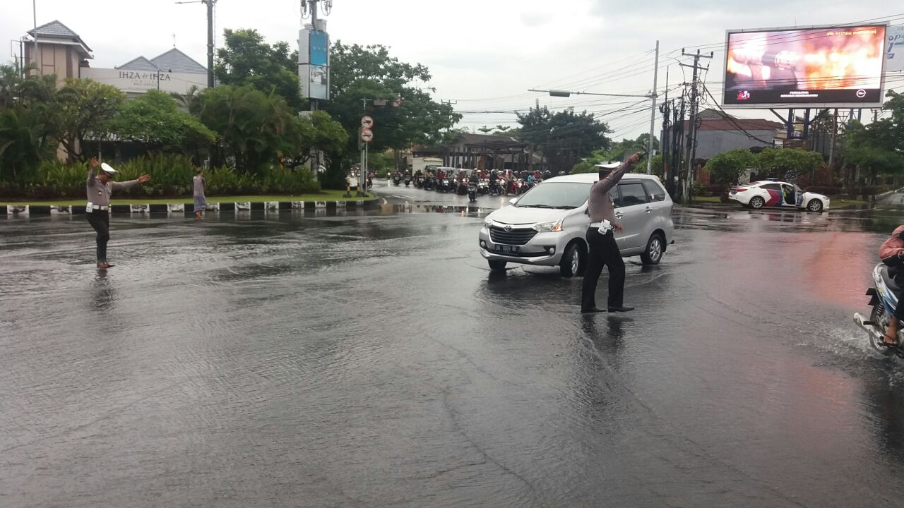 “Ada beberapa lokasi kepadatan yang menjadi atensi kita yang rawan terjadinya banjir, dan kita telah menempatkan personil untuk membantu kelancaran arus lalu lintas,”ucap Wakasat Lantas Polresta Denpasar.