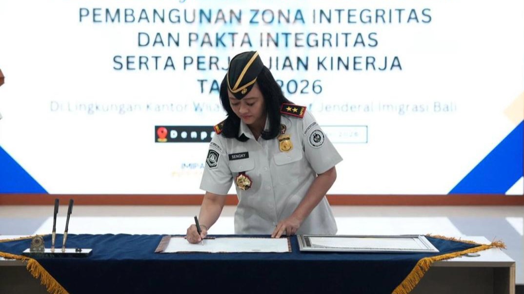 BERITAFAJARTIMUR.COM (DENPASAR) – Kantor Wilayah Direktorat Jenderal Imigrasi Bali menggelar acara Penandatanganan Komitmen Bersama Pembangunan Zona Integritas dan Pakta Integritas serta Perjanjian Kinerja Tahun 2026 pada Rabu (11/02) yang disaksikan oleh Kepala Perwakilan Ombudsman Provinsi Bali dan Kepala Kejaksaan Tinggi Bali. Acara ini memiliki makna strategis dalam mendukung pelaksanaan reformasi birokrasi dan peningkatan kualitas pelayanan publik di wilayah Bali.
