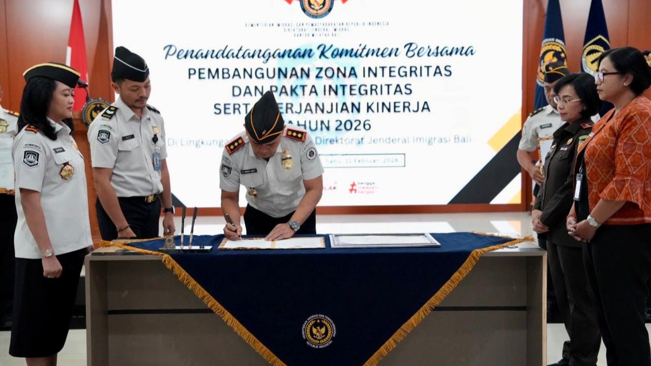 Penandatanganan tersebut dilakukan secara bersama-sama oleh Kepala Kanwil Ditjen Imigrasi Bali, Felucia Sengky Ratna, bersama jajaran pejabat manajerial yang meliputi Kepala Bagian Tata Usaha dan Umum, Kepala Bidang Intelijen dan Kepatuhan Internal, Kepala Bidang Dokumen Perjalanan, Izin Tinggal dan Status Keimigrasian, Kepala Bidang Pengawasan dan Penindakan Keimigrasian, serta para Kepala Unit Pelaksana Teknis (UPT) Imigrasi se-Bali.