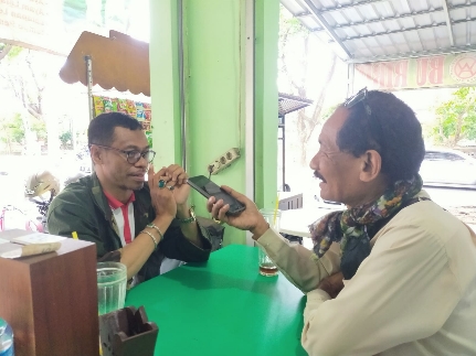Caption: Yohakim Jante Joni, SH., saat sedang diwawancarai Donny Parera dari media Online Beritafajartimur.com, beberapa waktu lalu.